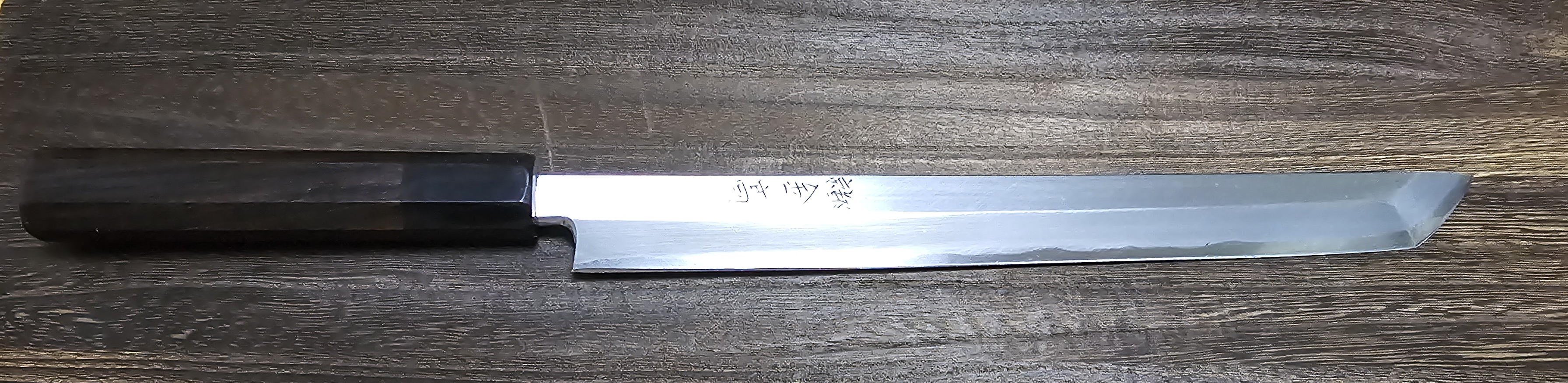 Kökskniv Sakimaru stål shirogami 2 handtag ebenholts. Handtillverkad i Kyoto